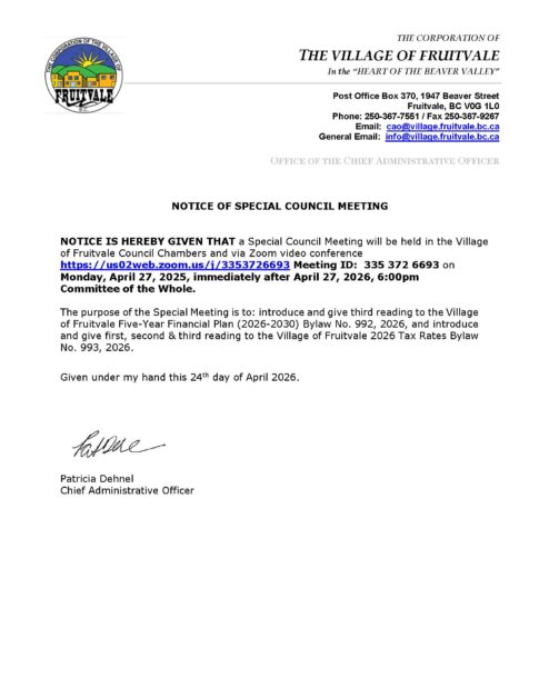 The Village of Fruitvale is located in the West Kootenay region of Southern BC. The ‘Kootenay lifestyle’ is embraced by locals and tourists alike. Home to a welcoming community and surrounded by stunning natural beauty, Fruitvale is a thriving recreation paradise. Visit the Tourism & Recreation page HERE. You can also visit us on our Facebook page.