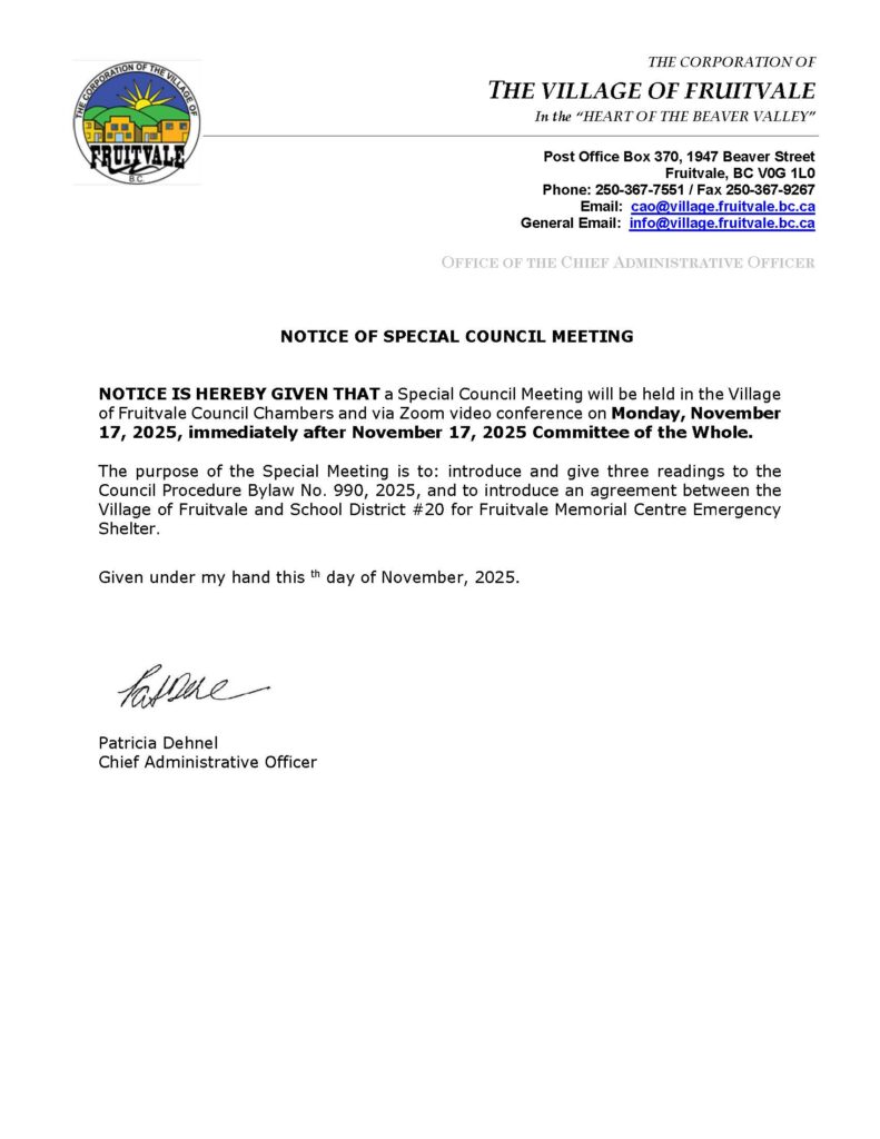 SPECIAL COUNCIL MEETING NOVEMBER 17, 2025